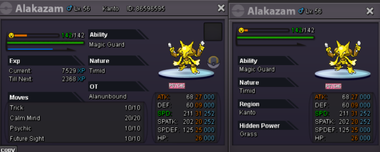 Auction Details: Start Price: 100k End Point: 48 hours (after start price is met) Insta Price: n/a Minimum Raise: 50k Accepted Payments: Pokedollars. RR = 700K , CC = 480k Important Reminders: This is a Cross Server auction. If bidding from any server, i will transfer to your preferred server upon winning. If you intend to purchase with an alt account, specify the account alongside your bid. If a bid is received in the final 15 minutes of the auction, the end point will be delayed by 15 minutes from that bid, and will be delayed by 15 minutes for each new bid thereafter, until the current offer has been held for a full 15 minutes. Happy Bidding!