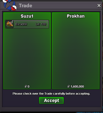 AUCTION DETAILS - Start Price: 500K - End Point: 30 Hours (After Start) - Insta Price: N/A - Minimum Raise: 50k - Accepted Payment(s): Pokédollars | CC = 500k - Server Name: Gold Important Reminders - This is a Gold Server auction. You may bid from any server but you must transfer to Gold Server upon winning the auction. - If you intend to purchase with an alternate account or from other server, please specify the account name and/or server name alongside your bid. - 15 minutes rule is applied. (If a bid is received in the final 15 minutes of the auction, the end point will be delayed by 15 minutes from that bid, and will be delayed by 15 minutes for each new bid thereafter, until the current offer has been held for a full 15 minutes) - Please check the Trade Rules and Auction Rules if you are new to trading in PRO.