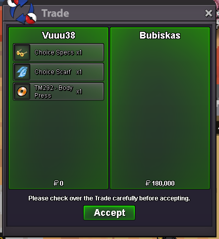 Start Price: 5m End Point: 48H (after start price is met) Insta Price: N/A Minimum Raise: 200k Payments: Pokedollars, Coin Capsules (x1 Coin Capsule = 500k) Important Reminders: This is a Silver Server auction. If bidding from an alternative server, state that you will transfer upon winning. If you intend to purchase with an alt account, specify the account alongside your bid. If a bid is received in the final 15 minutes of the auction, the end point will be delayed by 15 minutes from that bid, and will be delayed by 15 minutes for each new bid thereafter, until the current offer has been held for a full 15 minutes.