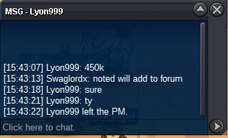 Starting Bid: 500k Min Bid: 100K Insta: N/A Duration: 24h after first bid Accepted items Coin Capsule -500k Iv Reroll ticket - 720k