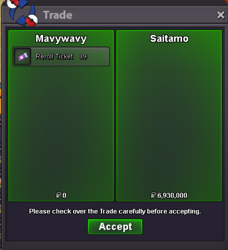 Action: 48h after first bid Start offer: 2m for ea Min Bid: 100k Insta: N/A Accepted payments Coin Capsule = 500k Reroll Ticket = 700k Ingame: lamola Discord: lamola3824 Action: 24h after first bid Start offer: 100k Min Bid: 50k Insta: N/A Accepted payments Coin Capsule = 500k Reroll Ticket = 700k Ingame: lamola Discord: lamola3824