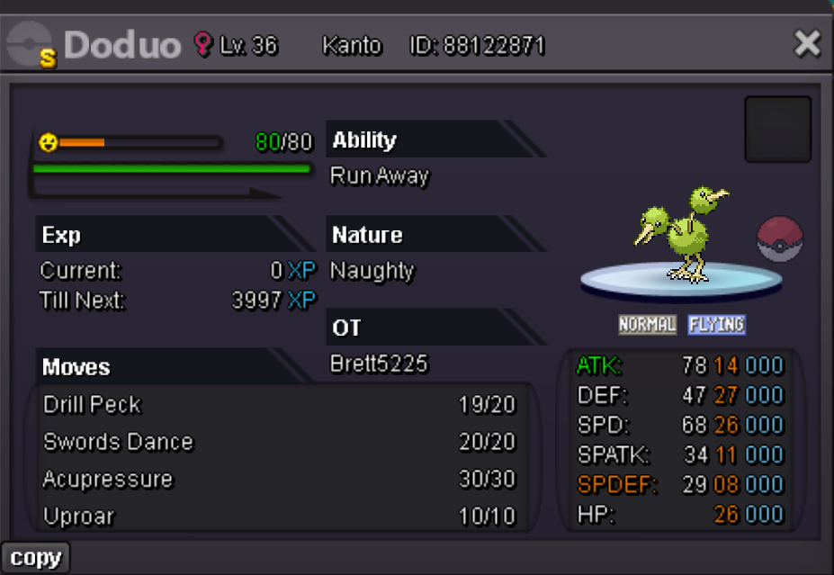 Auction Details: Start Price: 4m End Point: 30 hours (after start price is met) Insta Price: n/a Minimum Raise: 500k Accepted Payments: Pokedollars, Coin Capsules (x1 Coin Capsule = 500k), IV Reroll Tickets (x1 IV Reroll Ticket = 750k) Important Reminders This is a silver Server auction. You may bid from any server but you must transfer to silver Server upon winning the auction. If you intend to purchase with an alternate account or from other server, please specify the account name and/or server name alongside your bid. 15 minutes rule is applied. (If a bid is received in the final 15 minutes of the auction, the end point will be delayed by 15 minutes from that bid, and will be delayed by 15 minutes for each new bid thereafter, until the current offer has been held for a full 15 minutes) Please check the Trade Rules and Auction Rules if you are new to trading in PRO