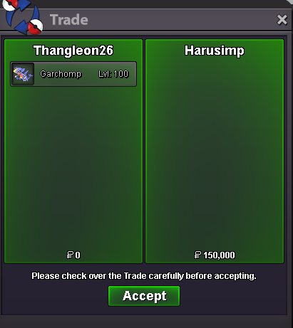 Start Price: 1.8m End Point: 48 hours (after start price is met) Insta Price: N/A Minimum Raise: 100k Accepted Payments: Pokedollars / 1x CC = 450k / 1x IV RR = 600k