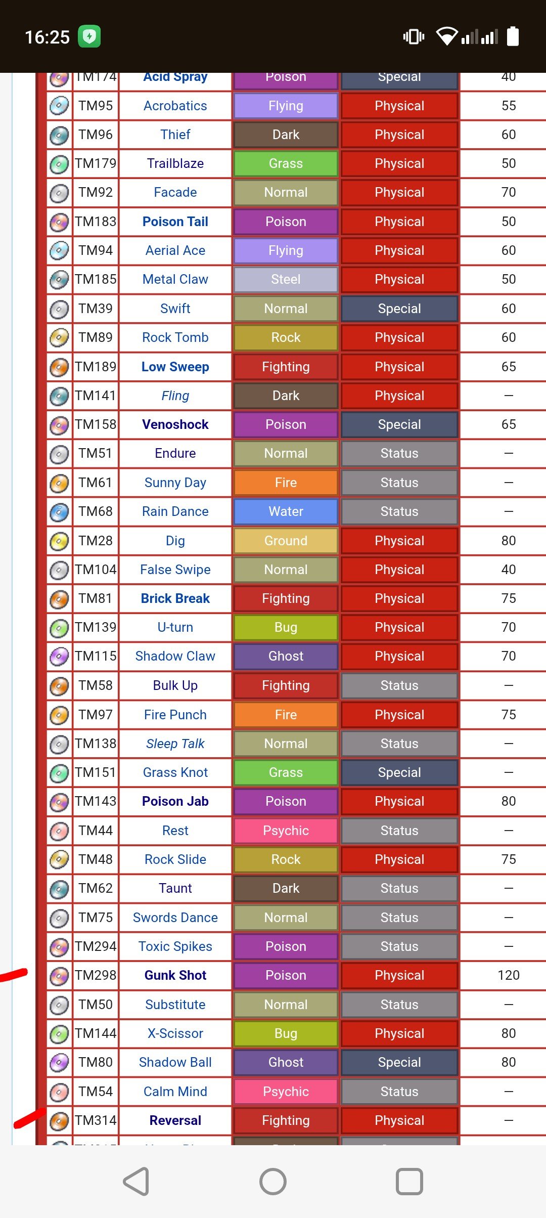 It is said in Pro wiki that Sneasler learns Gunk shot and Reversal thru TM. but I can't find the tm anywhere. Anyone know where I can get them or any tm tutors anywhere? I found the Move tutor for Gunk shot at petalburg woods but it says it can't learn it.