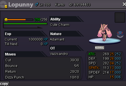 Agresivity started following Shiny Adamant Lopunny Cute Charm / 25Atk