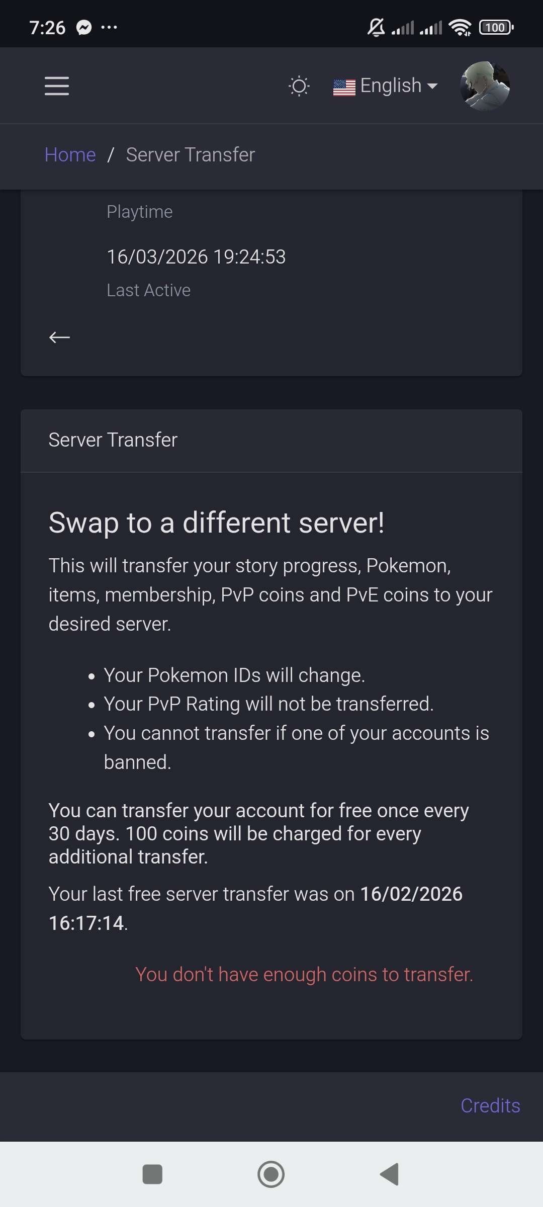 I can't switch my server it keeps showing 100 coins to transfer even do its my last month. Kindly need help