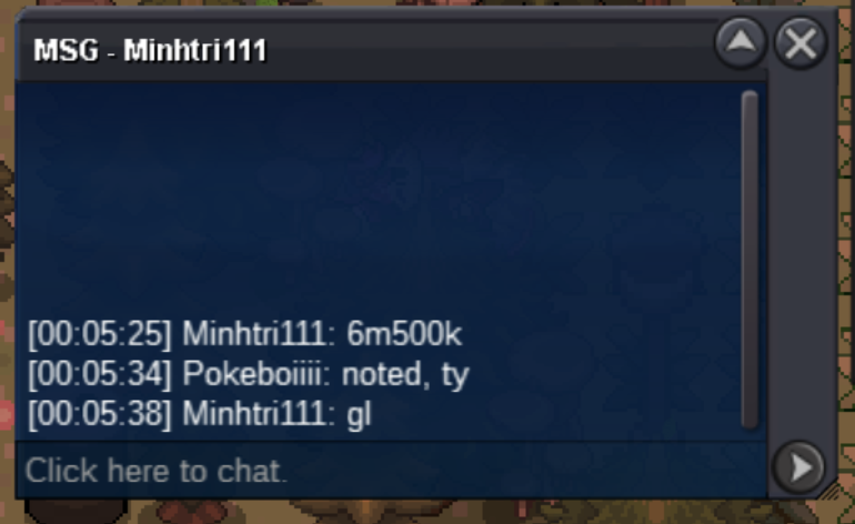 Auction Details: Start Price: 2m End Point: 48 hours (after start price is met) Insta Price: N/A Minimum Raise: 100k Accepted Payments: Pokedollars, Coin Capsules (x1 Coin Capsule = 500k), IV Reroll Tickets (x1 IV Reroll Ticket = 700k) Important Reminders: This is a Cross Server auction. You may bid from any server but you need to transfer. (This Poke is in silver) If you intend to purchase with an alt account, specify the account alongside your bid. If a bid is received in the final 15 minutes of the auction, the end point will be delayed by 15 minutes from that bid, and will be delayed by 15 minutes for each new bid thereafter, until the current offer has been held for a full 15 minutes. Happy Bidding!