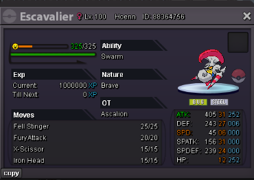Start Price: 500k End Point: 48 hours (after start price is met) Insta Price: N/A Minimum Raise: 100k Accepted Payments: Pokedollars, Coin Capsules (x1 Coin Capsule = 500k), IV Reroll Tickets = x1 IV Reroll Ticket = 750k) Important Reminders: This is a Silver Server auction. If bidding from an alternative server, state that you will transfer upon winning. If a bid is received in the final 15 minutes of the auction, the end point will be delayed by 15 minutes from that bid, and will be delayed by 15 minutes for each new bid thereafter, until the current offer has been held for a full 15 minutes.