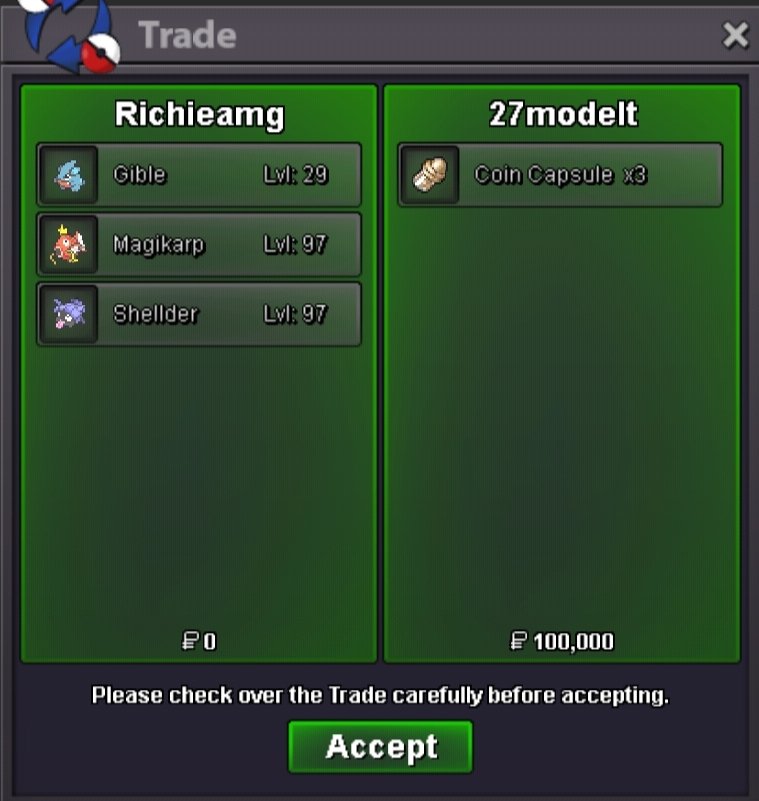 Auction Details Start Price: 500k End Point: 30 Hours (after start) Minimum Bid: 50k Accepted Payments: Pokedollars / 1x CC = 480K / 1x Nature RR = 300K / 1x IV RR = 700k
