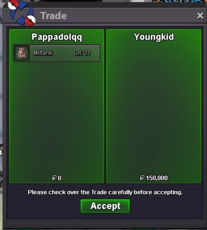 Hello everyone, I have reversed the trade as @Leo1019's bid was not valid. @Gun01, in order for a bid to be valid, it must be posted on the forum on time. As you posted it 18 minutes after the deadline, this bid cannot be considered valid. For this reason, @Mahnmee is the winner of the auction with his 350k bid. To correct the outcome of the auction I have: Added 400K to @Leo1019's account. Deducted 50K from @Gun01's account. Deducted 350K from @Mahnmee's account. Transferred Blacephalon to @Mahnmee's account. To avoid future penalties, please make sure you trade with the correct winner @Gun01. If you have any doubtsabout who the winner is, please ask before trading. Best regards, Hizukii -