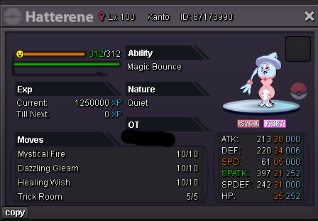 WTS PVP TRICK ROOM EPIC QUIET HATTERENE MAGIC BOUNCE