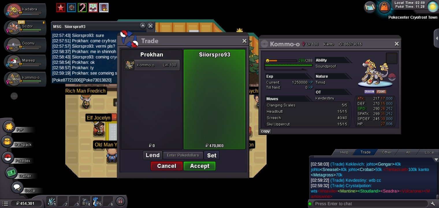 Starting price: 700k Min bid: 100k No insta Auction End 48 hours after the first Bid Payment Methods: Pokedollars Coin Capsule: 500k reroll ticket : 750k Ingame: Technorookie Discord: skittle4462 -