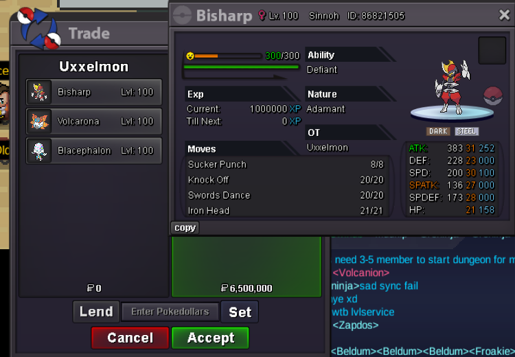 Auction Details : Start Price: 1m End Point: 48 Hours (after start) Insta Price: NA Minimum Raise: 100k Accepted Payments: Pokedollars , cc= 500k Server Name: gold Important Reminders This is a Gold Server auction. You may bid from any server but you must transfer to Gold Server upon winning the auction. If you intend to purchase with an alternate account or from other server, please specify the account name and/or server name alongside your bid. 15 minutes rule is applied. (If a bid is received in the final 15 minutes of the auction, the end point will be delayed by 15 minutes from that bid, and will be delayed by 15 minutes for each new bid thereafter, until the current offer has been held for a full 15 minutes) Please check the Trade Rules and Auction Rules if you are new to trading in PRO