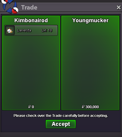 Auction Details: Start Price: 400k End Point: 48 hours (after start price is met) Insta Price: N/A Minimum Raise: 50k Accepted Payments: Pokedollars, Coin Capsule (500k) Reminders: This is a Silver Server auction. If bidding from a different server, state that you will transfer upon winning. If you intend to purchase with an alt account, specify the account alongside your bid. If a bid is received in the final 15 minutes of the auction, the end point will be delayed by 15 minutes from that bid, and will be delayed by 15 minutes for each new bid that comes after, until the current offer has been held for a full 15 minutes.