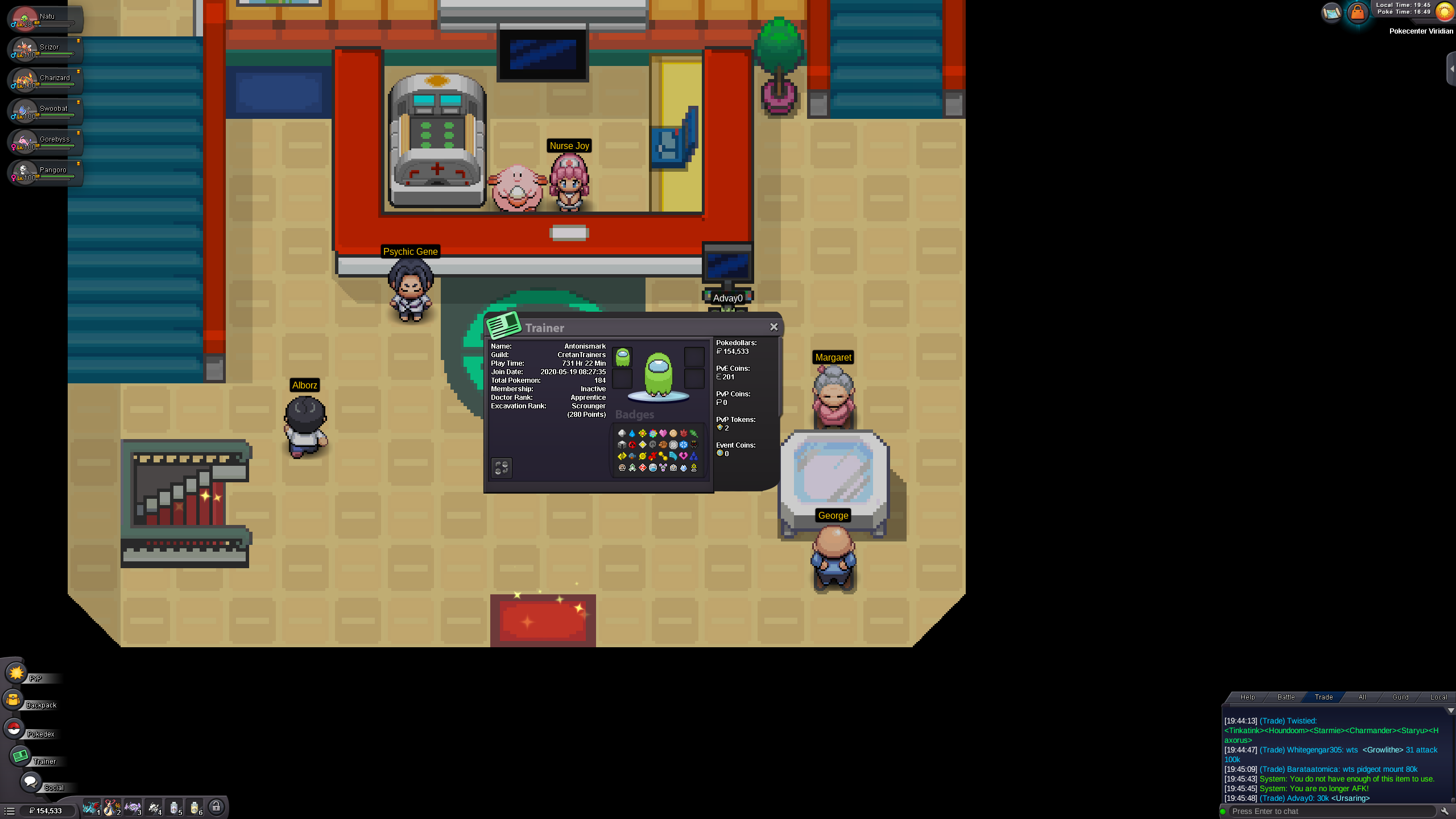 Dear staff, I have a clone, Dawn06, and I used it for dex service. I have some tags to sort my pokemons. When I opened storage, all players disapear and I cant contact with players (cant trade, cant battle,...), NPC, maps,... such as a ghost mode. I want the staff team can fix this bug as soon as possible, this affects seriously to my dex service Besides, I suggest to add moving tags. That's mean player can move tag up and down.