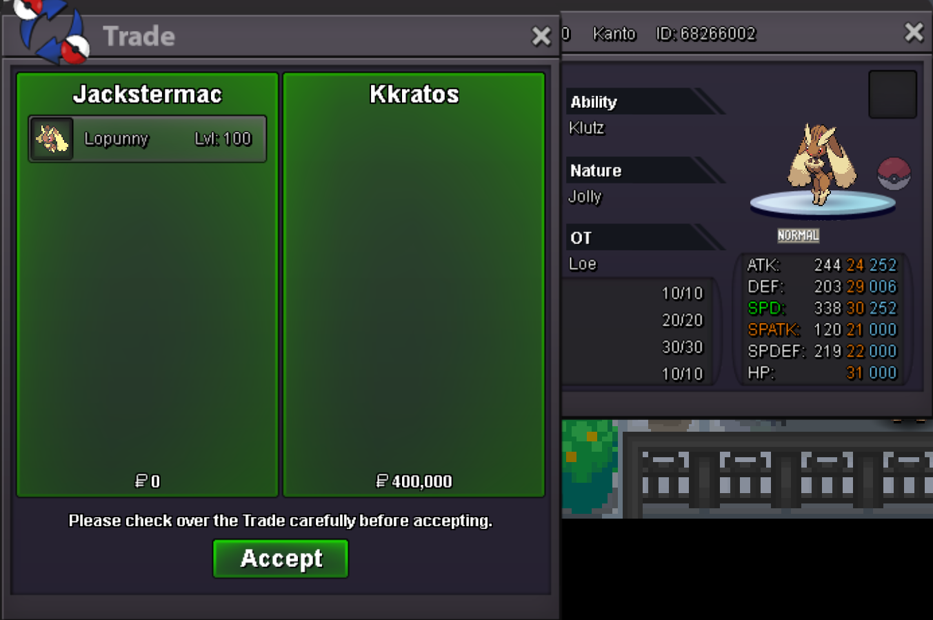 Start Price: 5m End Point: 48 hours (after start price is met) Insta Price: 10m Minimum Raise: 200k Accepted Payments: Pokedollars, Coin Capsules (x1 Coin Capsule = 470k), IV Reroll Tickets (x1 IV Reroll Ticket = 780k), Nature Reroll Tickets (x1 Nature Reroll Ticket = 375k)