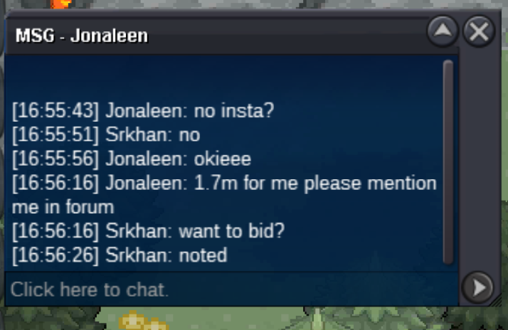 Congratulations on winning the auction @Norex I'm online now, can we meet in Murky Town? -
