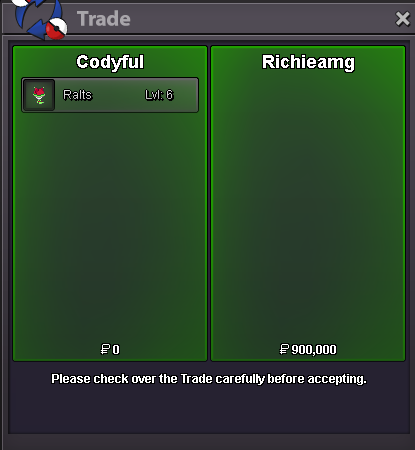 Start Price: 2m End Point: 48 hours (after start price is met) Insta Price: N/A Minimum Raise: 300k Accepted Payments: Pokedollars , Coin Capsules (x1 Coin Capsule = 500k), IV Reroll Tickets (x1 IV Reroll Ticket = 700k) Important Reminders: This is a cross-server auction. You may bid from any server, and I will transfer to your preferred server upon winning. (I may use another account to complete the trade if the winner is from the Silver server) If a bid is received in the final 15 minutes of the auction, the end point will be delayed by 15 minutes from that bid, and will be delayed by 15 minutes for each new bid thereafter, until the current offer has been held for a full 15 minutes.