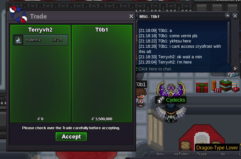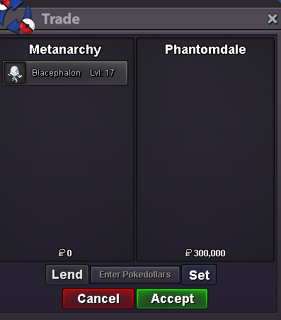Auction Details Start Price : 500k Insta Price : N/A Current Price : X Min Raise : 100k End Point : 48h after first bid IGN : Lor3hc Accepted Payments Pokedollars Coin Capsule (500k ea) Reroll Ticket (750k ea)