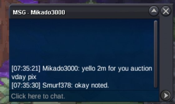 Starting Price: 1m End Point: 24hrs after first bid Insta: none Min. Raise: 100k Accepted Payment(s): CC=500k, 600k