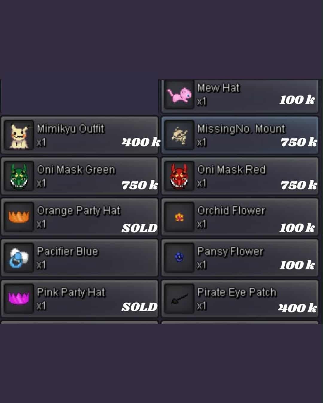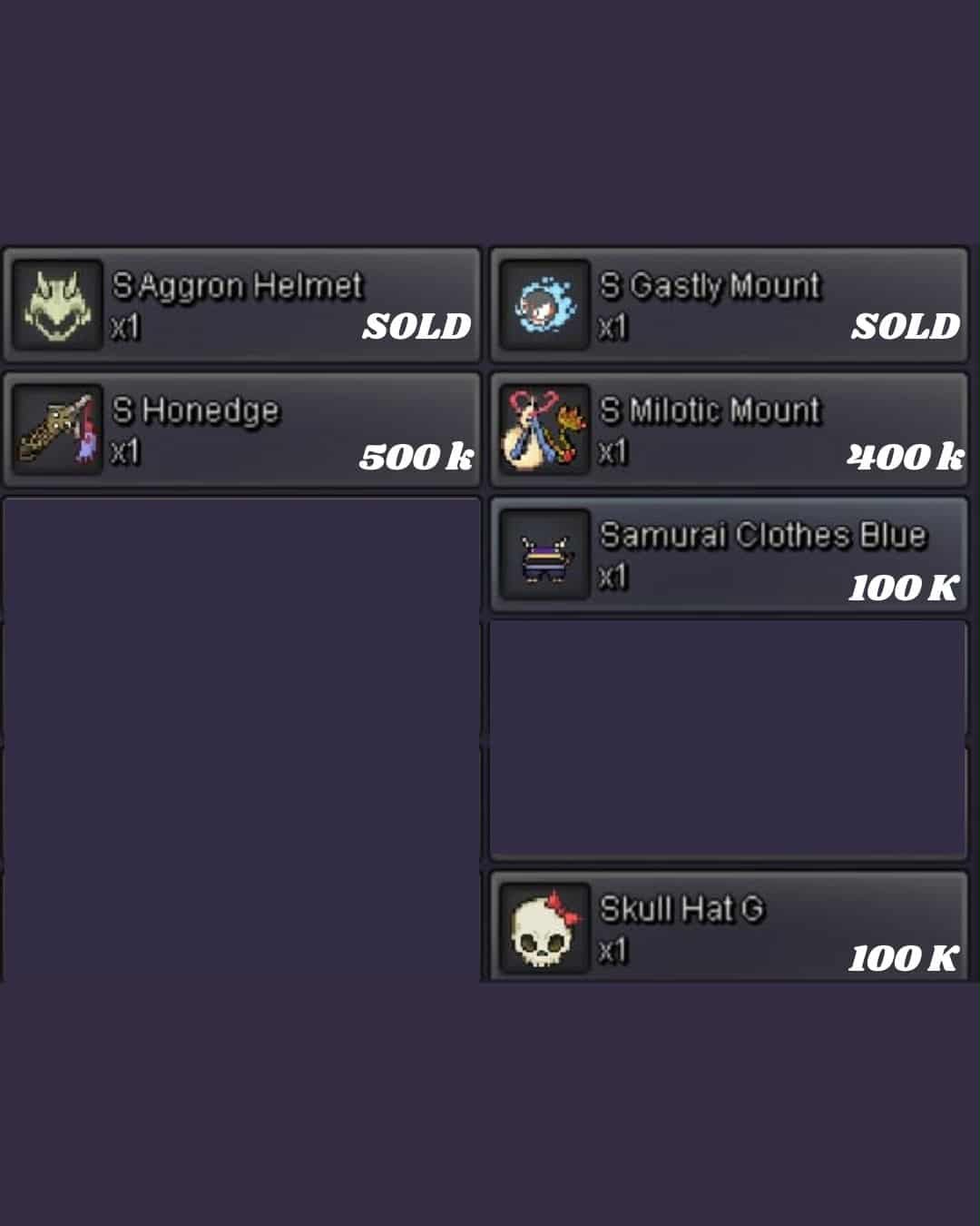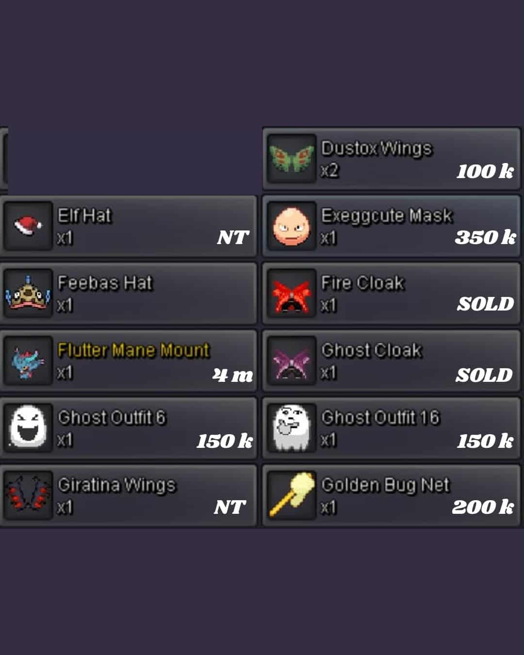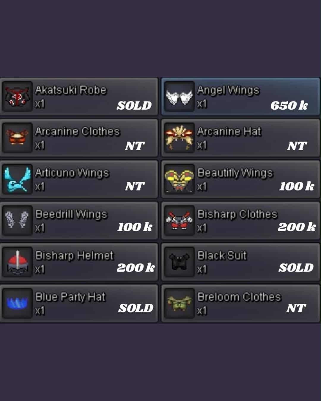 Store policy 1 - Items with the word "NT" are not for trade 2 - There are no refunds and fake offers will be reported 3 - The customer is allowed to contact Yayozama through discord or pro to make business 4 - Prices are not fixed so customers can make offers 5 - The store accepts as forms of payment the following: Pokepesos Coin Capsules - 450k Reroll Tickets - 700k if u are latino u get a 5% discount Most trades realized in Vermillion City, Kanto. There can be some exceptions If I miss a comment for a sale please dm me on discord @yayozama and we'll line up a time
