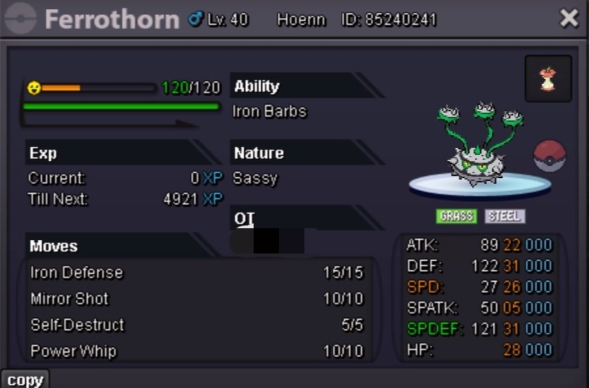 [Godly] Sassy Ferrothorn | 31def/31spdef/28hp