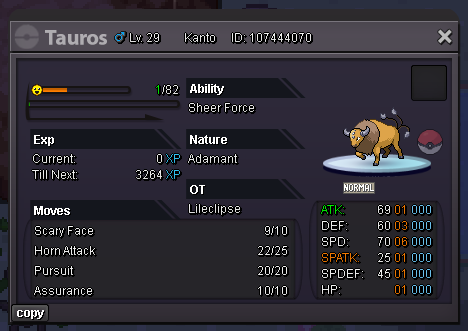 [AUCTION] Reverse Epic Tauros – Adamant / Sheer Force (Silver Server) Level: 29 Nature: Adamant Ability: Sheer Force OT: Lileclipse Reverse Epic (High ATK / SPD — Low HP & DEF) Starting Bid: 50k Minimum Bid Increment: 10k Accepted Payments: Pokedollars CCs @ 500k each IV Rerolls @ 750k each No Insta Price Auction Duration: 48 hours (after starting bid is met) Rules: This is a Silver Server auction. If you’re on Gold, you must transfer to Silver upon winning. Please include the account name you will be using for the transaction if it’s not your main. 15-Minute Rule: If a bid is placed within the last 15 minutes of the auction, the end time will extend by 15 minutes from that bid. This continues until the final offer stands for a full 15 minutes.