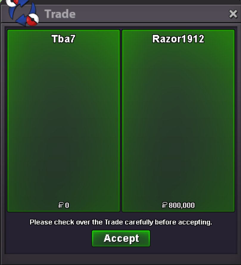 Auction Details: Start Price: 20M End Point: 48 hours (after start price is met) Insta Price: n/a Minimum Raise: 100k Accepted Payments: Pokedollars. RR = 700K , CC = 480k Important Reminders: This is a Cross Server auction. I will transfer upon winning. If you intend to purchase with an alt account, specify the account alongside your bid. If a bid is received in the final 15 minutes of the auction, the end point will be delayed by 15 minutes from that bid, and will be delayed by 15 minutes for each new bid thereafter, until the current offer has been held for a full 15 minutes. Happy Bidding!