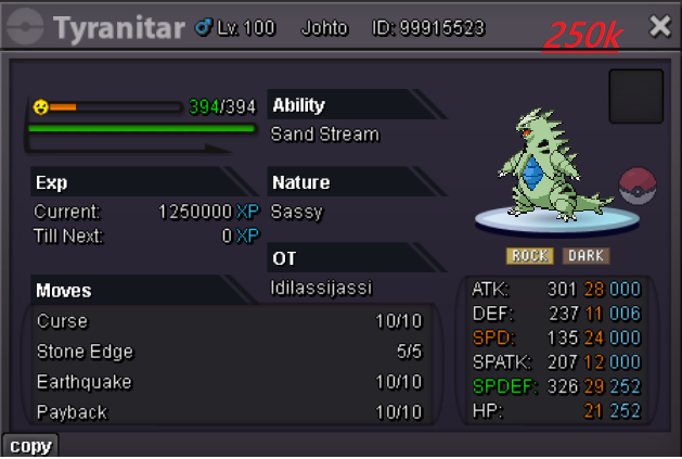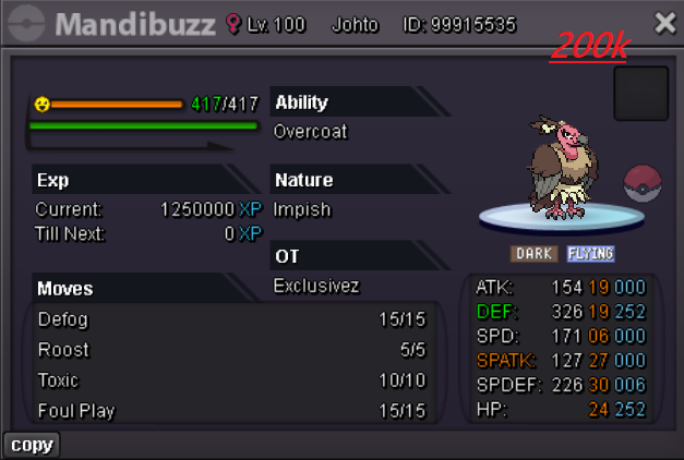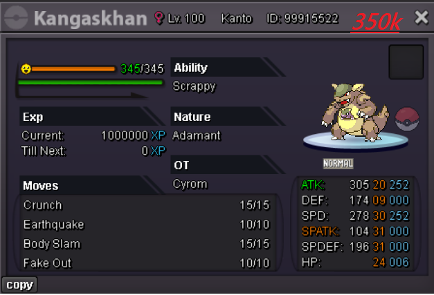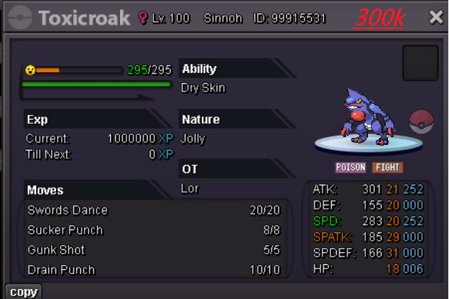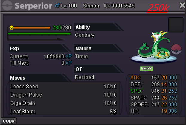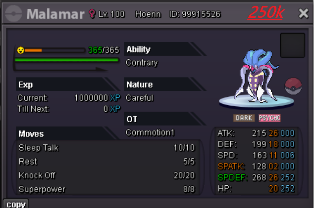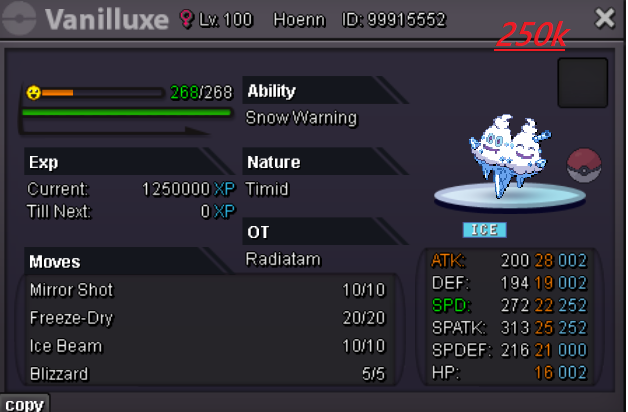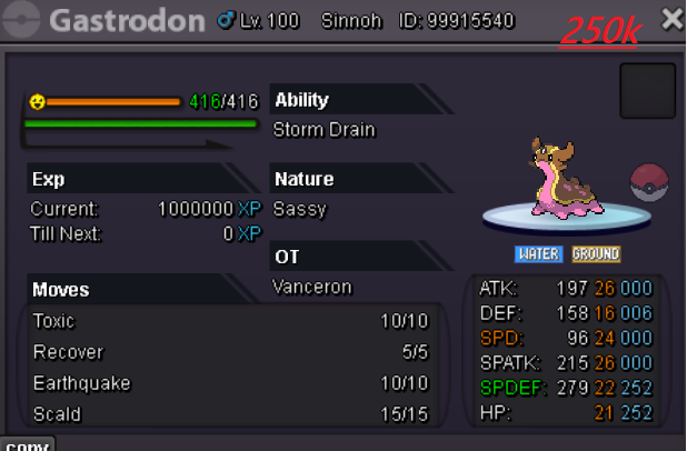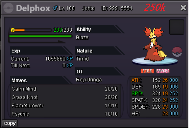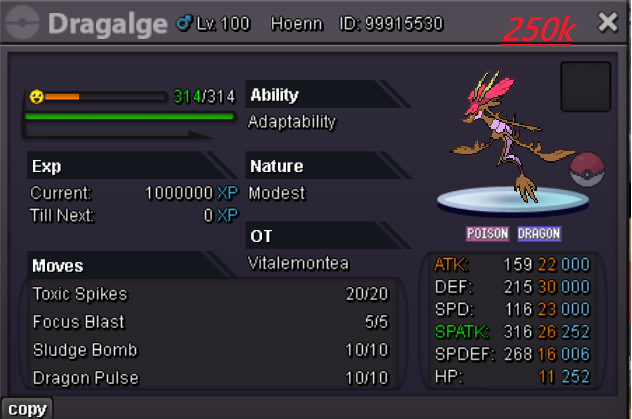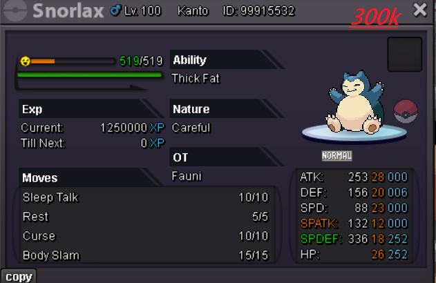 Welcome to Clumsygirll's pvp/pve shop 1. Prices are negotiable unless there already is a sale (but offer fair) 2. The prizes for items and cosmetic are NOT negotiable. 3. Fake offers will be reported 4. I Have every right to decline your offer (some prizes arent negotiable) 5. No discussions, or any type of non business related comments are allowed wanna give advice that's welcome (keep that in-game) 6. Once you offer, it's final (you can't go back, so be sure to check if you have the amount of money required before the purchase. Payment Options: Coin Capsule / CC (470k) Pokedollars Rare candy (5k each) Contact options: Contact me on forum in game Clumsygirll, or via Discord Vanity1996_ Trained Pokemons: