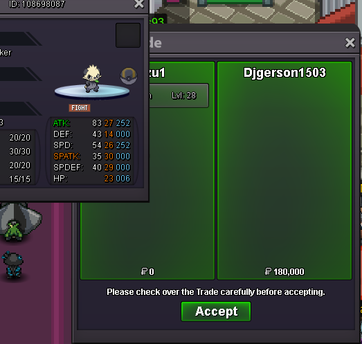 Alt account: Sumocal (Silver Server) Auction Details: Start Price: 3m End Point: 66 hours (after start price is met) Insta Price: N/A Minimum Raise: 200k Accepted Payments: Pokedollars, Coin Capsules (x1 Coin Capsule = 500k), IV Reroll Tickets (x1 IV Reroll Ticket = 750k) Important Reminders: This is a Cross Server auction. You may bid from any server, and I will transfer to your preferred server upon winning. If you intend to purchase with an alt account, specify the account alongside your bid. If a bid is received in the final 15 minutes of the auction, the end point will be delayed by 15 minutes from that bid, and will be delayed by 15 minutes for each new bid thereafter, until the current offer has been held for a full 15 minutes. Happy Bidding!