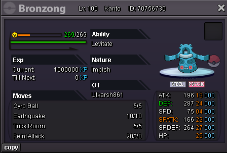 Hello there @Jackstermac, since you mentioned on your request that you played with it recently in PvP, then you should be able to find the replay of that match. While watching the replay, the Pokemon in your party will be visually replaced with what you used on that match, therefore you should be able to click on the Bronzong and see the ID and all the other information that might be important for Staff to retrieve your Pokemon. When you have that information, you can do a new request either on discord or in forum and this time Staff should be able to assist you in retrieving your Pokemon. I hope that way helpful to you, have a great one! Kind Regards, Lugario