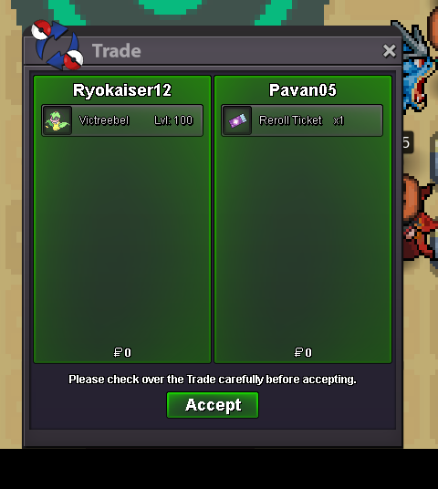 Sorry, but you’re a little late. The auction has already completed in both parties have already received their Pokémon. It ended on Saturday. I’ll keep that rule in mind for next time, but I was already walking surfers that day so I could give one in each server if needed