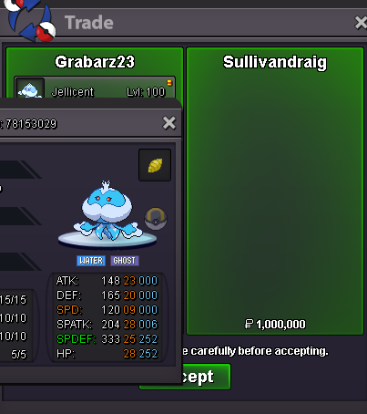 Auction Details Start Price: 8m End Point: 48 Hours (after start) Insta Price: 15m Minimum Raise: 250K Accepted Payments: Pokedollars Server Name: gold Important Reminders This is a Silver Server auction. You may bid from any server but you must transfer to Silver Server upon winning the auction. If you intend to purchase with an alternate account or from other server, please specify the account name and/or server name alongside your bid. 15 minutes rule is applied. (If a bid is received in the final 15 minutes of the auction, the end point will be delayed by 15 minutes from that bid, and will be delayed by 15 minutes for each new bid thereafter, until the current offer has been held for a full 15 minutes) Please check the Trade Rules and Auction Rules if you are new to trading in PRO