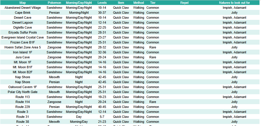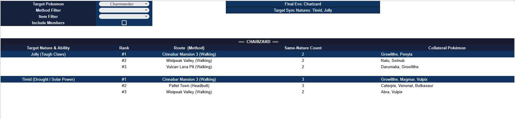 Hello guys, Idk if anyone needed this or not but made this google sheet as a fun little project. Basically, I was grinding for PvP and my all level 100 mons Dex and got super tired of running around looking for a specific nature on just one Pokémon. I realized I could be catching 3 or 4 other viable competitive mons at the exact same time if I just knew what else shared that Sync nature on the route. So, I built this thing to act like a hunting GPS. You just tell it what you want to catch, and it cross-references live Smogon data with PRO’s spawn tables to tell you the absolute best routes to stand on for maximum "collateral damage." (other mons which shares the same sync nature) What it actually does: Route Ranking: Pick a target (like Charmander) and it scans every route, telling you the top 3 places to go based on how many other mons there need the exact same Sync nature. Membership Toggle: Uncheck a box and it automatically hides Safari/member-only areas so you don't waste time looking at locked routes. Built-in Smogon Viewer: Pulls Gen 9 NatDex sets (Abilities, Items, Natures) straight to the dashboard so you don't have to keep tabbing out to Chrome to check what ability you need. Evo Logic: If you search "Poliwag," the sheet automatically knows you are actually hunting for the competitive stats of Poliwrath and Politoed. If you scroll over to the right, you’ll find all the raw spawn data. That’s also where the Item Hunter feature is. Just select the item you want to farm from the drop-down, and it’ll tell you exactly which mons hold it and where to find them, works just like it does in Pokémon Reborn! How to get it working: Because this sheet uses a custom script to run the search engine in the background, we can't all share my live sheet or it will completely break when two people search at once. You have to clone it. You can try this here and if you want your own copy follow the steps below: Click here to grab your own copy: Click here Click "Make a copy" so it saves to your personal Google Drive. Go to the Dashboard and try changing the Target Pokémon in cell B1. Does take 4-5 seconds. Let me know if this helps anyone out, or if you spot any weird spawn data I need to fix. Also, suggestions on what more I can add or any idea that can be changed into helpful google sheets are always welcome! — IGN: Arshuuu (SILVER)