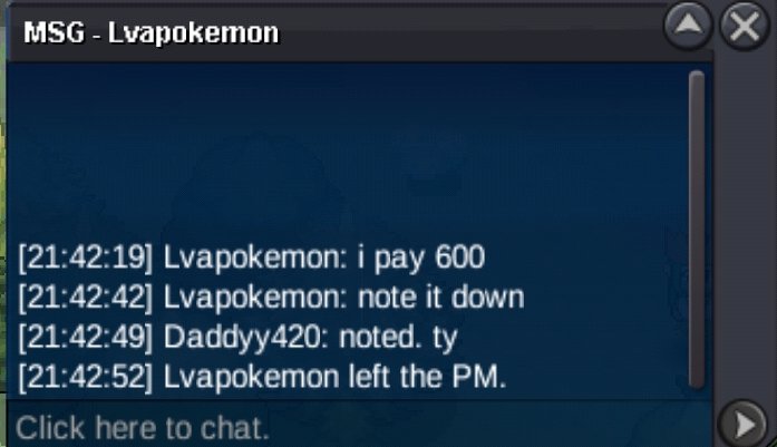 Starting Price - 250k Min rise :- 10k Start after 1st bid Time - 48h after 1st bid Insta 700k Payment :- cc (500k),Pokedollars