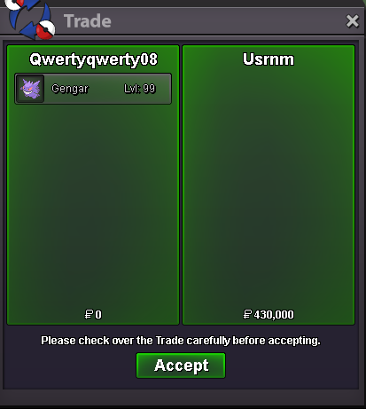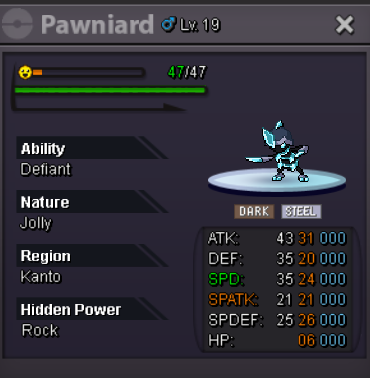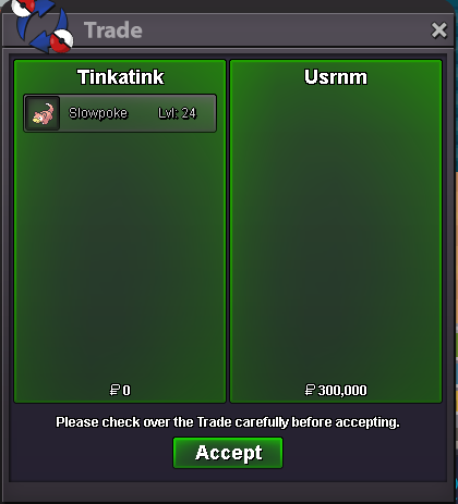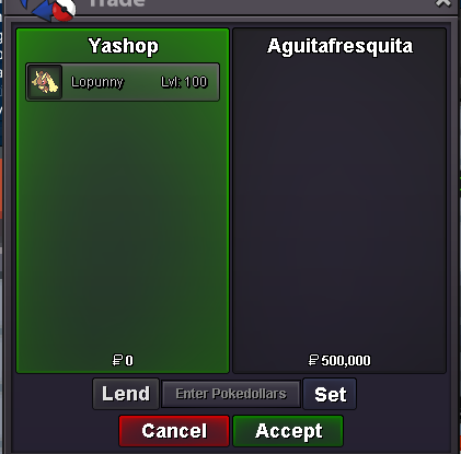 Start price: 100k End point: 48 hours (after start price is met) Insta price: N/A Minimum raise: 100k Accepted payments: Pokedollars, coin capsules (x1 coin capsule = 500k), IV reroll tickets (x1 IV reroll ticket = 750k), nature reroll (x1 nature reroll = 375k) Important reminders: If you intend to purchase with an alt account, specify the account alongside your bid. If a bid is received in the final 15 minutes of the auction, the end point will be delayed by 15 minutes from that bid, and will be delayed by 15 minutes for each new bid thereafter, until the current offer has been held for a full 15 minutes.