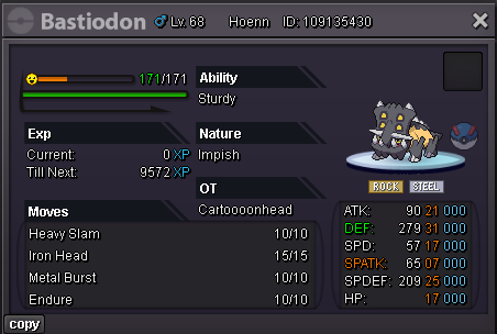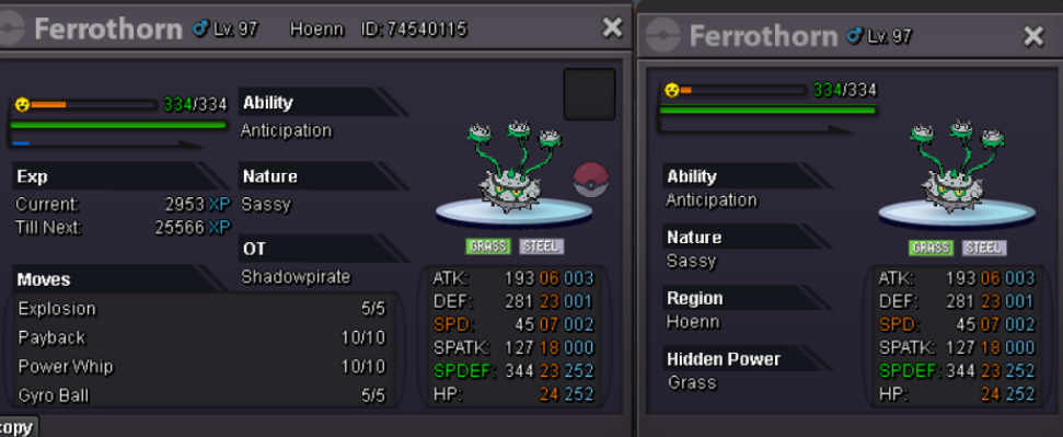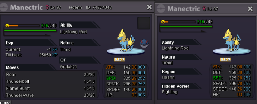 7. ACCEPT PAYMENT: CC - 500k, Iv reroll - 650k, Nat reroll - 300k, PokeDollars Auction rules: It starts with the first bid and ends 24 hours after the first bid. You can offer any accepted payment method for the amount you prefer. Good luck to all. ( Charizard) S.O: 250k, MIN BID: 50K, INSTA: 1m, TIME: 24H AFTER THE FIRST BID ( Ferrothorn) S.O: 200k, MIN BID: 50K, INSTA: 600k, TIME: 24H AFTER THE FIRST BID ( Hydreigon) S.O: 250k, MIN BID: 50K, INSTA: 800k, TIME: 24H AFTER THE FIRST BID (Manectric) S.O: 250k, MIN BID: 50K, INSTA: 800k, TIME: 24H AFTER THE FIRST BID ( Rotom Wash) S.O: 250k, MIN BID: 50K, INSTA: 1m, TIME: 24H AFTER THE FIRST BID ( Snorlax) S.O: 150k, MIN BID: 50K, INSTA: 500k, TIME: 24H AFTER THE FIRST BID