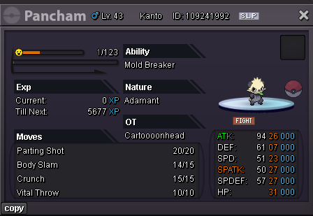 3. I'm looking for: Garchomp summer jolly or ada kanto Gengar glitch 31/31 timid kanto Charizard solar power 31/31 timid or jolly kanto Breloom technician forms jolly kanto