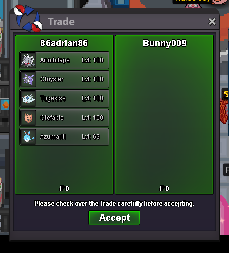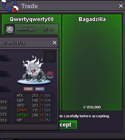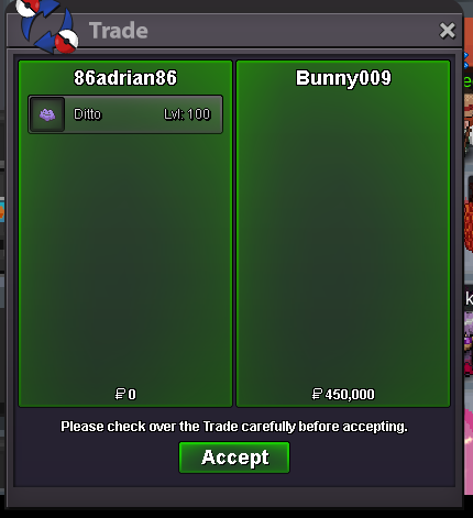 Start Offer: 3m Min Bid: 100k. Insta: 17.5m Duration: 48 hours after the first bid. Accepted payments : Reroll Ticket: 700k each. Nature Reroll: 350k each. Coin Capsule: 500k each. Pokedollars.