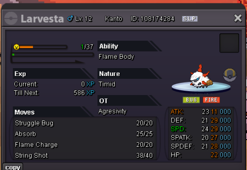 Agresivity started following [Epic] Larvesta Timid H.P Steel