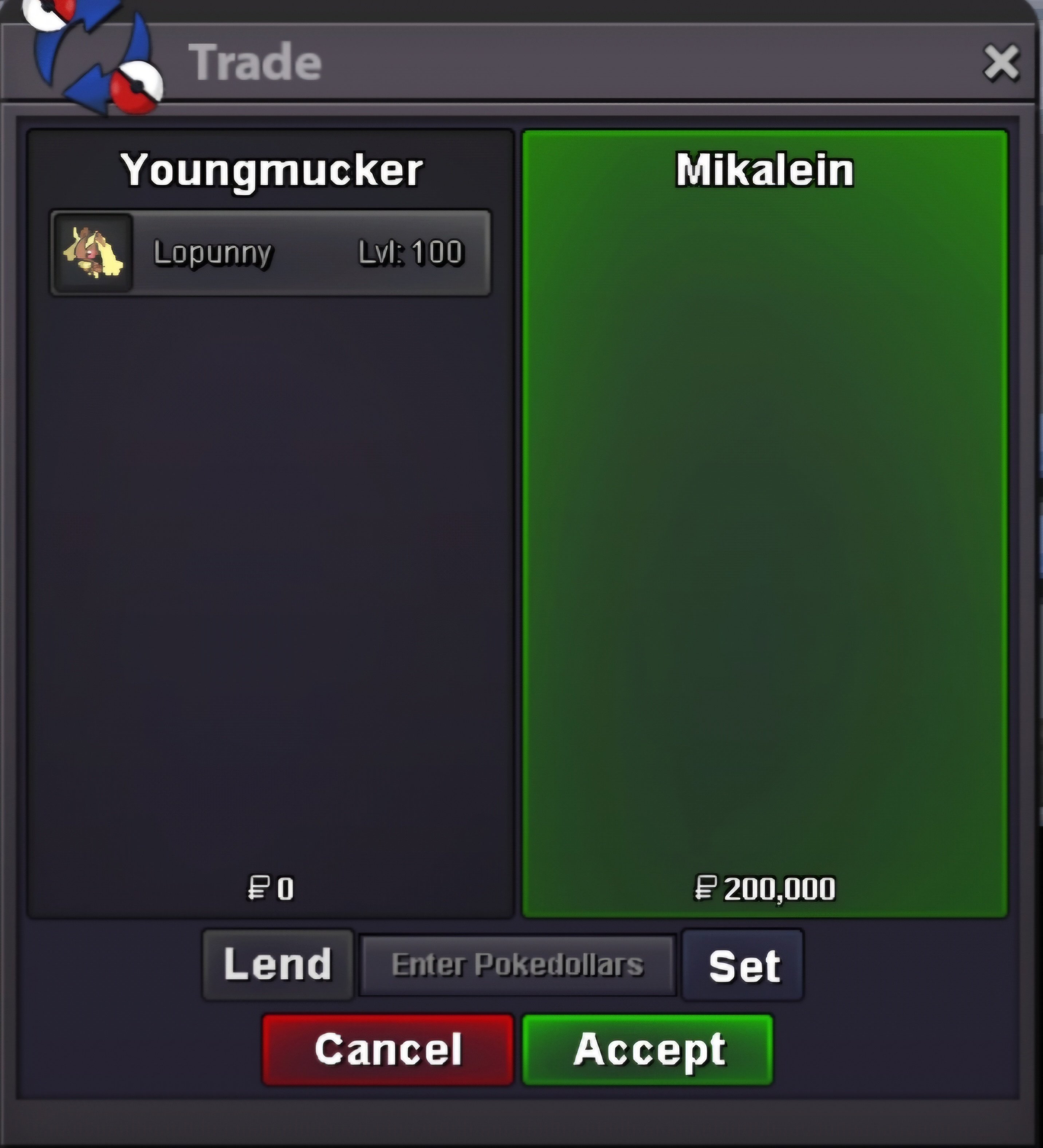 Hello and welcome to this auction. this is Not a bundle. s.o each poke is 100k min raise 100k No insta 24hrs Left After First bid. accept Cash/cc(550k) and rriv (750k). gl&hf hp ground.