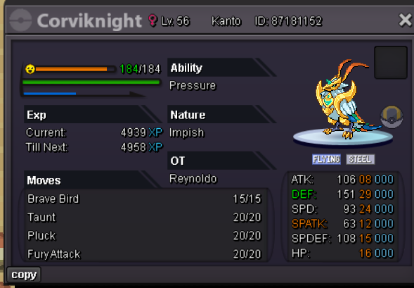 Auction Details: Start Price: 15m End Point: 48 hours (after start price is met) Insta Price: N/A Minimum Raise: 200k Accepted Payments: Pokedollars, Coin Capsules (x1 Coin Capsule = 500k), IV Reroll Tickets (x1 IV Reroll Ticket = 700k) Important Reminders: This is a Cross Server auction. You may bid from any server, and I will transfer to your preferred server upon winning. If you intend to purchase with an alt account, specify the account alongside your bid. If a bid is received in the final 15 minutes of the auction, the end point will be delayed by 15 minutes from that bid, and will be delayed by 15 minutes for each new bid thereafter, until the current offer has been held for a full 15 minutes. AUCTION CLOSED
