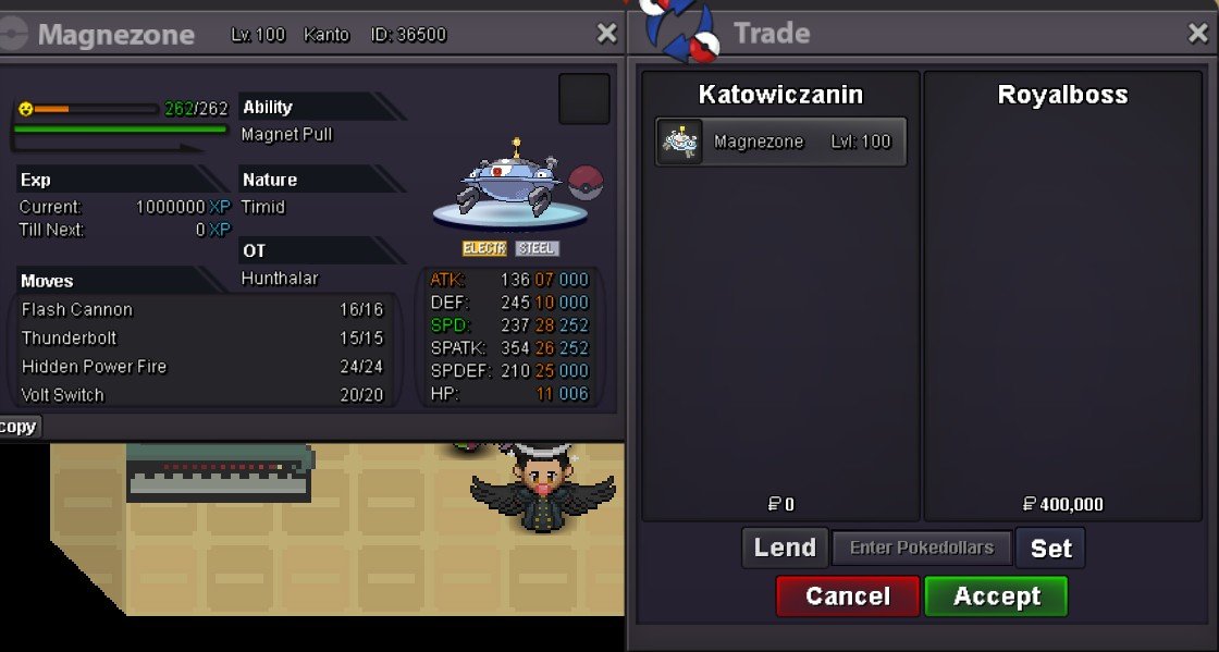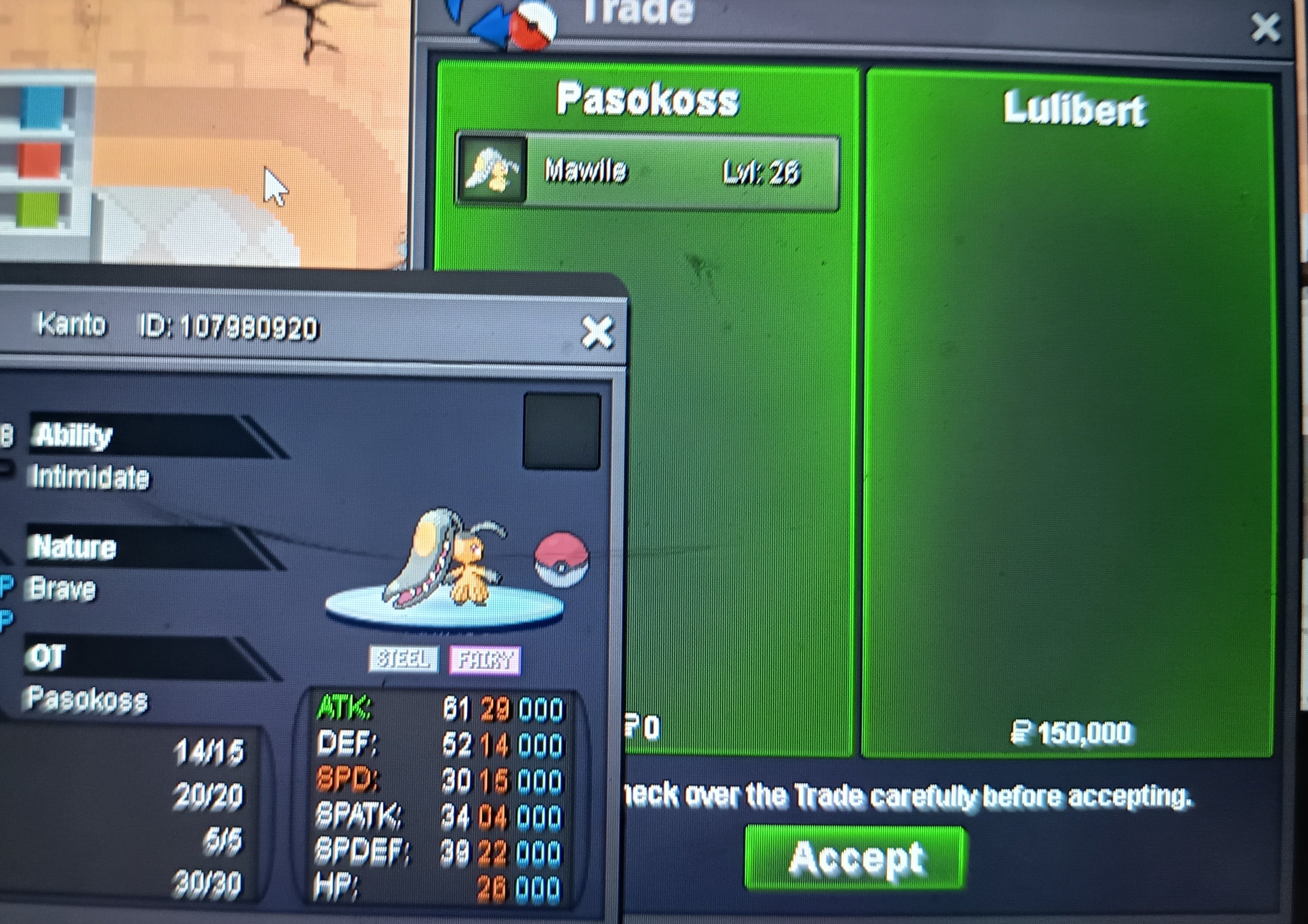 Hello Trainers, welcome to my service shop. I provide services about Level up, EV up and updating other services. Hope you like it and find what you want here. Below I will provide you with a shop service that will help you clear your story and many quests quickly at a very cheap price. Note: Please read carefully the conditions. Thank you! Payment Method Pokedollars. Coin Capsule = 400k / each. IV Reroll = 500k / each. Rare Candy = 5k / each. Level Up Service from lv20+ = 95k / each. from lv50+ = 75k / each. from lv70+ = 60k / each Conditions - The time required to level up your pokemon depends how busy I am in real life if you feel too long contact me in game or discord ( contact below ). - Your pokemon must be level 20+ when you order me to level them up. - I will level up your pokemon to level 95~97 or 6k / each rare candy if you want up more. EV Up Service 50k / each ( 30k / each when event takes place ). Conditions - The time required to EV up your pokemon depends how busy I am in real life if you feel too long contact me in game or discord ( contact below ). - Your pokemon must be level 20+ and have 0 EV when you order me to EV them up or 2k/ each berry to reduces EV or you can use your berry. - I can don't accept some pokemon that difficult to EV up unless you give me more time or it have move with much PP and Damage. Thank you for using my service. CONTACT Discord: Ngocdai / nngocdaii Ingame: Ngocdai GMT+7 ( Viet Nam)