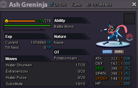 10. Ends 48 hrs of starting bid S.O 17m Min Bid: 300k ACCEPTED PAYMENTS: Pokedollars Reroll Ticket (700k ea) Nature Reroll (350k ea) Capsule Coins: (450k) Rules: Please include the account name you will be using for the transaction if you are not purchasing with your main account. 15 Minute Rule: If a bid is received in the final 15 minutes of the auction, the end point will be delayed by 15 minutes from that bid. This delay will repeat with each new bid until the current offer has stood for a full 15 minutes. Insta: 25m