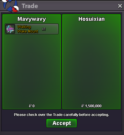 Current offer 2.5m by Inustur Insta 10m 71 hrs left/ Ends Oct. 26 3:15 PM GMT +8 Min bid 100k Accepted payments: CC: 500k: IV RR: 750k NTR RR: 375K RC: 5K