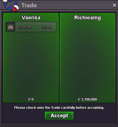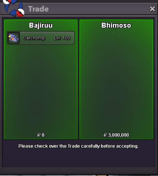 Hello @Leonardosenpai & @Gracee I have force the trade of the Auction here. 10k have been deducted from @Gracee's Account. 10k have been added to @Leonardosenpai's Account. Abra, both Gible, Sableye, Horsea, Zorua and Magbye has been transfered to @Gracee's Account. In the future if you need help, please use the report button. Kinda Regards Glitterwing