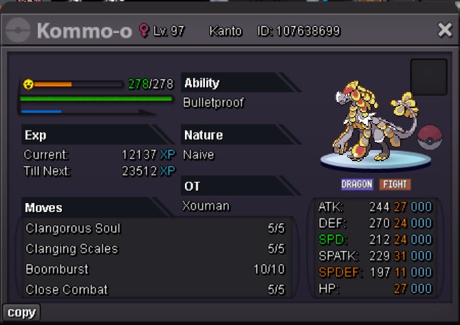 10. Auction Details: Start Price: 200k End Point: 48 hours (after start price is met) Insta Price: N/A Minimum Raise: 50k Accepted Payments: Pokedollars, Coin Capsule (500k) Reminders: This is a Silver Server auction. If bidding from a different server, state that you will transfer upon winning. If you intend to purchase with an alt account, specify the account alongside your bid. If a bid is received in the final 15 minutes of the auction, the end point will be delayed by 15 minutes from that bid, and will be delayed by 15 minutes for each new bid that comes after, until the current offer has been held for a full 15 minutes.