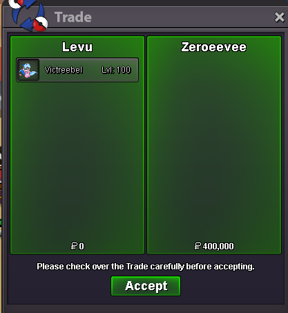 Start : 2m Min bid : 100k No insta End Point: 48 hours (after start price is met) ACCEPTED PAYMENT METHODS : - Coin Capsule = 480K PokeDollars - IV Reroll Ticket = 670K PokeDollars - Nature Reroll Ticket = 335K PokeDollars