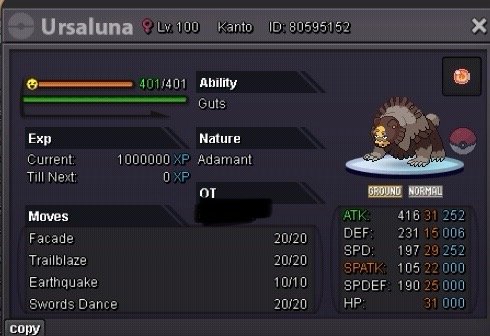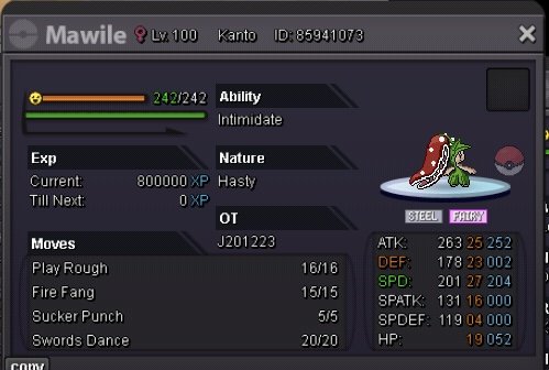 Start Price: 20m End Point: 48 hours (after start price is met) Minimum Raise: 100k Accepted Payments: Pokedollars, Coin Capsules (x1 Coin Capsule = 500k), IV Reroll Tickets (x1 IV Reroll Ticket = 750k) Important Reminders: This is a Cross Server auction. You may bid from any server, and I will transfer to your preferred server upon winning. If a bid is received in the final 15 minutes of the auction, the end point will be delayed by 15 minutes from that bid, and will be delayed by 15 minutes for each new bid thereafter, until the current offer has been held for a full 15 minutes.