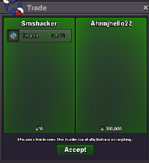 Start Price: 400k End Point: 48 hours (after start price is met) Insta Price: N/A Minimum Raise: 50k Accepted Payments: Pokedollars, Coin Capsules (x1 Coin Capsule = 500k)